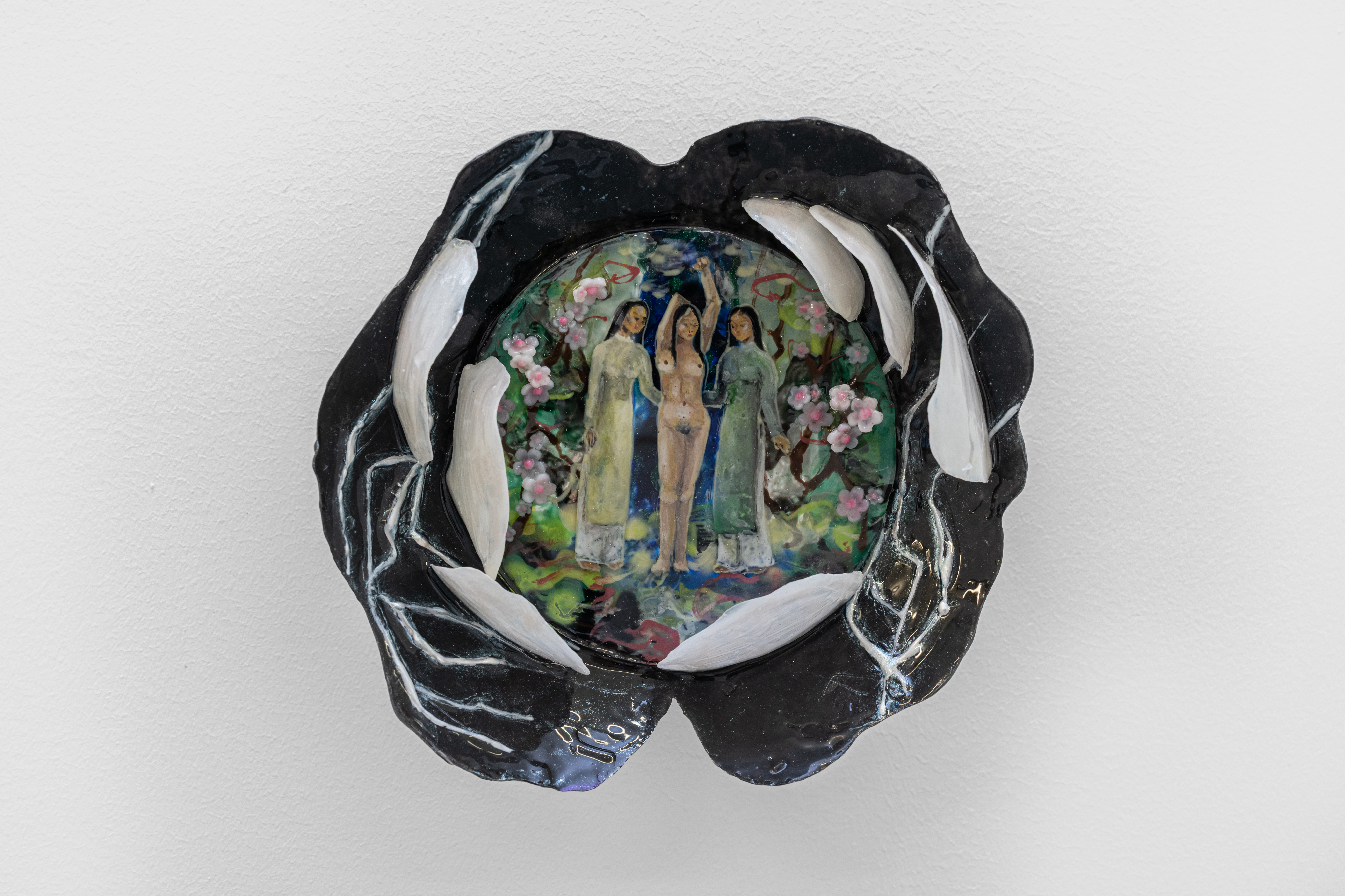 The exhibition brings together four artists from the Vietnamese diaspora, based between London and Paris. Using the metaphor of aquariums found in Vietnamese seafood restaurants, the artists immersed themselves in the fishbowl that is the confined space of the gallery, to explore themes of identity and of the simulacrum.